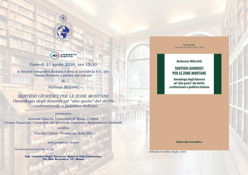 CONVEGNO: Sentieri giuridici per le zone montane (Roma, 23 aprile 2026, ore 15:30 – in presenza e online)